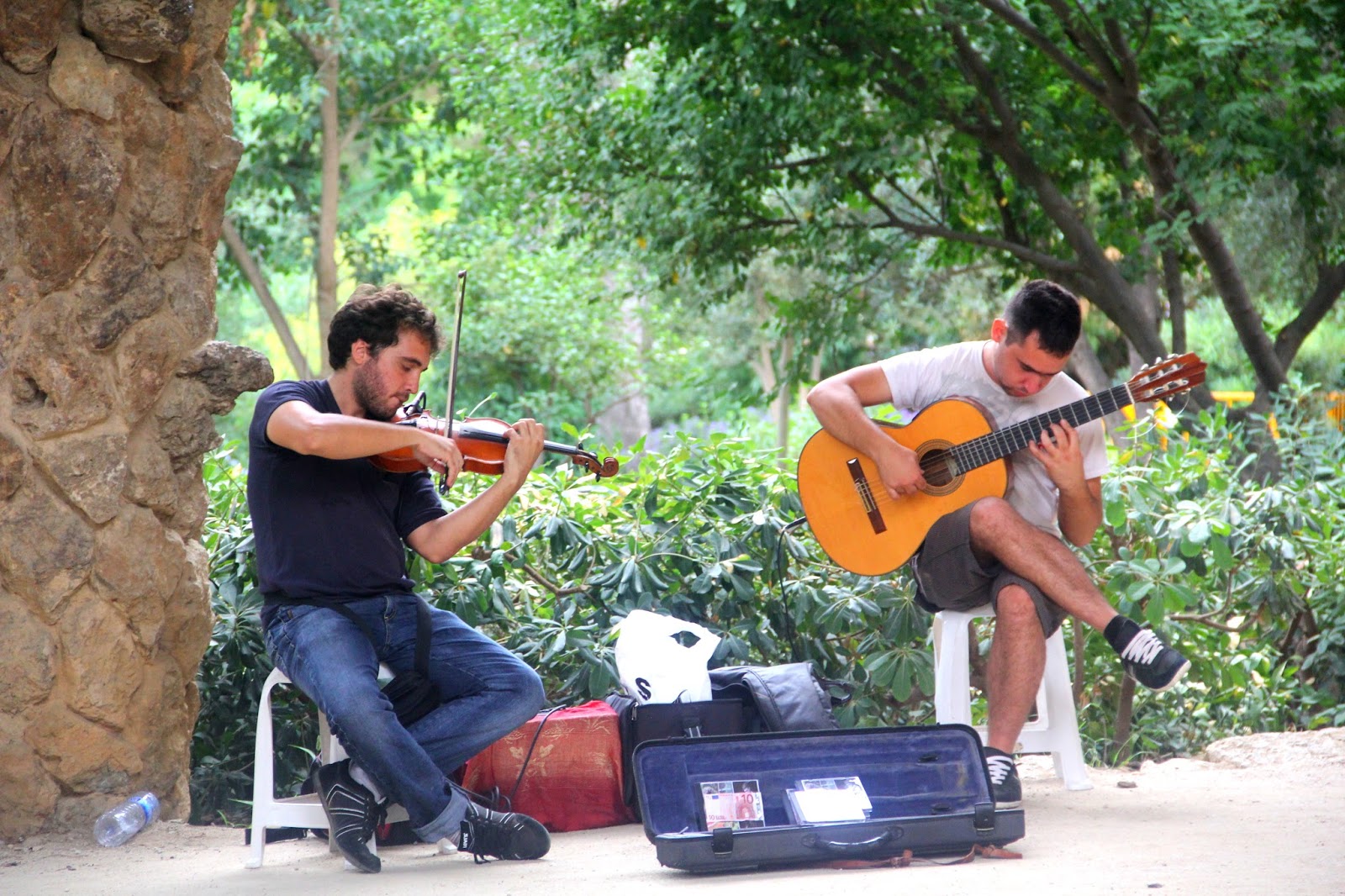 Polecam odwiedziny w Park Guell. Nie chodzi tutaj o roślinność, czy piękne budynki zaprojektowane przez Gaudiego, a o dźwięki, które dobiegają z każdego zakamarka parku. Mnie urzekł duet skrzypiec połączony z hiszpańską gitarą. Można siedzieć na ławce i delektować się muzyką do samego wieczora.